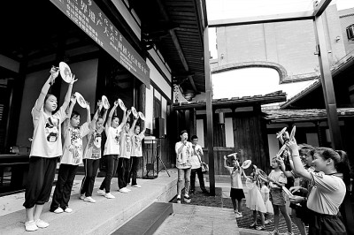 趙洪說:“有的孩子開始要學戲就是因為服裝、化裝好看,逐漸就會體會到更深層的美。從這個意義講,韻律操、學臉譜都是很好的普及形式?!?/p>