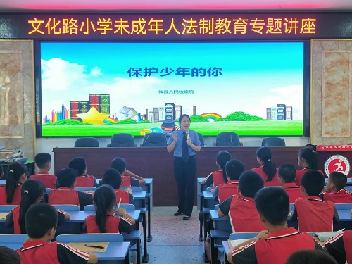 “網絡是把雙刃劍,我們要規范上網行為,防止網絡犯罪的侵害!”為營造平安穩定校園環境,履行好法治副校長職責,培養未成年人法治思維和自我保護意識,9月28日,湖南省攸縣人民檢察院的檢察官們來到了攸縣文化路小學,為該校200余名師生上了一堂精彩的法治課。