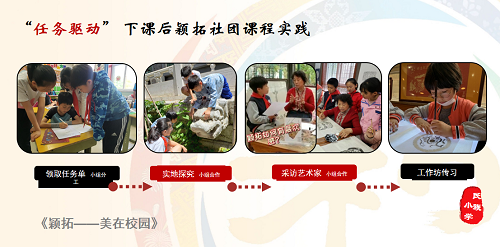 我們基于學生的興趣與需求,尊重差異,每周一天開展分層走班學科拓展學習活動。對學習有困難的學生開展有針對性的補習輔導,對學有余力的學生組織開展學科拓展研究性學習,給予學生自主學習探究的空間與平臺。我們倡議學生自愿參與、自主選題、自行組隊開展學習,從當前課本內的知識以及生活的經歷和經驗中發現問題,并嘗試解決問題,將所學和所用結合起來,最后得出結論,形成學習成果。例如:學生學到語文的神話單元,就自主研究“從中西方神話,看中西方文化的對比”;學生走進四合院,他們用數學的眼光觀察校園,發現原來校園中蘊涵著豐富的數學信息,也生成了許多與之相關的數學問題,進而組成小組,自主開展研究。