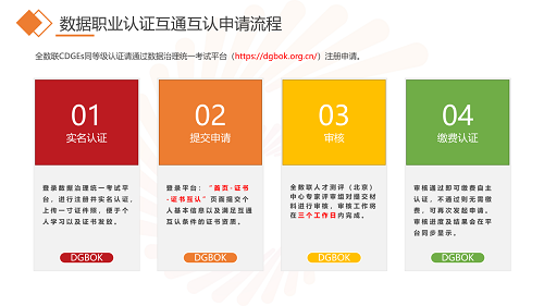 DGBOK培訓和認證體系在中華職業教育社指導下建立,其中,CDGE作為DGBOK認證生態中具有職業認定和職業規劃能力的職業認證初級考核標準,理應在數字人才認證的互通互認方面做出表率,并履行引領和試點的責任義務。