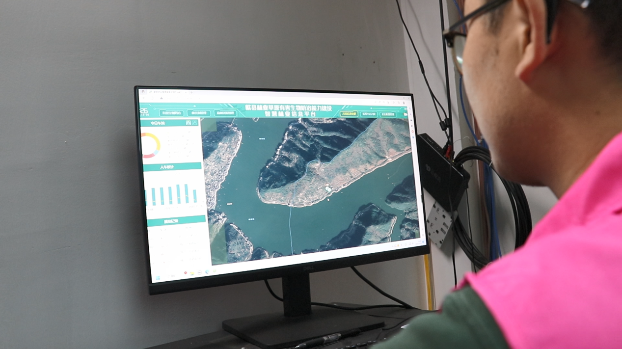 歙縣林業局工作人員通過平臺監測林區(徐鵬攝)
