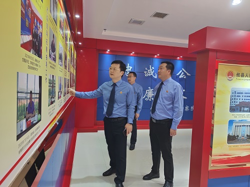 黃曉軍一行首先參觀了攸縣人民檢察院12309檢察服務中心、律師值班室、公開聽證室、榮譽室、職工書屋等特色檢察工作區及檢察文化建設陣地,隨后召開了座談會,該院全體在家院領導及部室負責人參加了會議。