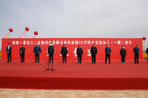 春天孕育生機,開工承載希望。4月26日,黑龍江省明水縣在陽泰(黑龍江)生物科技有限公司年處理22萬噸大豆深加工(一期)項目建設現場舉行重點項目開工及集中簽約儀式。此次共簽約項目14項,簽約金額達30.6億元。