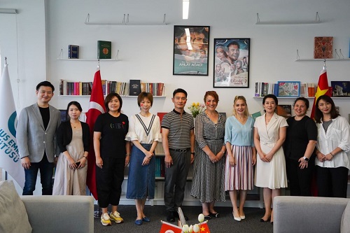 來自北京市海淀青少年活動中心的二十余位學員和老師們參與到本次活動中,得到了土耳其友人的熱情接待,并跟隨北京土耳其文化中心-尤努斯埃姆雷學院的喜仁老師、土耳其藝術家艾莎(Ay?e Emel Gümü?)老師就中土文化藝術展開深入的交流和學習。土耳其駐華大使館教育參贊蔣蘇(Cansu K?rkem Ak?ay)博士作為特邀嘉賓出席了活動,并與中方青少年進行了親切友好的互動。