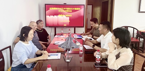 中國大眾音樂協會副主席、絲路國際文化藝術節組委會總顧問、名譽主席魏東明,組委會秘書長楊海乾、鄭麗娟,中國網音樂中國總監、組委會副主席李波,音樂中國市場運營總監、藝術節組委會執行秘書長謝莎莎等相關人員參加會議,藝術節總策劃、組委會執行主席陳山主持。