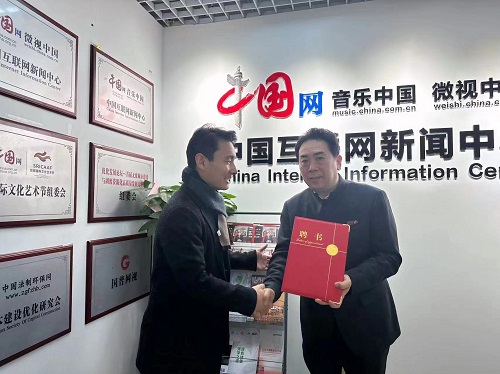 儀式上,中國網音樂中國總監李波為周紅軍頒發了“絲路國際文化藝術節暨音樂中國國際藝術博覽會”形象宣傳大使聘任書。