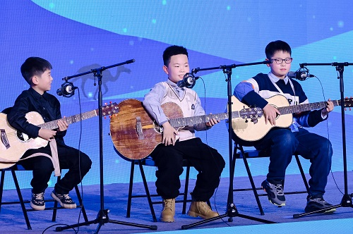 他們用跳躍的節奏和律動的鼓點,展示著對音樂的熱愛和無限的創造力,展現了扎實的藝術功底和新時代青少年的蓬勃面貌,觀眾們同樣沉浸在歡快的節拍中,跟隨音樂一起律動,享受著孩子們的音樂世界。
