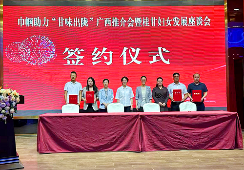 在廣西,甘肅省婦聯舉辦了巾幗助力“甘味出隴”廣西推介會暨甘桂婦女發展座談會,對甘肅投資環境、重點產業鏈及“甘味”農特產品進行重點推介,甘桂兩地婦聯簽訂了合作框架協議,16家企業現場簽訂總價值2.75億元的購銷協議。甘桂兩地60多家企業進行對接,展示品鑒兩地特色優勢農產品和巾幗巧手產品400多種,部分“甘味”產品選入“桂姐姐”電商銷售平臺。