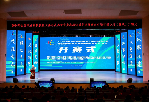 趙振文宣布2024年世界職業院校技能大賽總決賽爭奪賽高職組財經商貿賽道市場營銷小組(賽項)開賽。