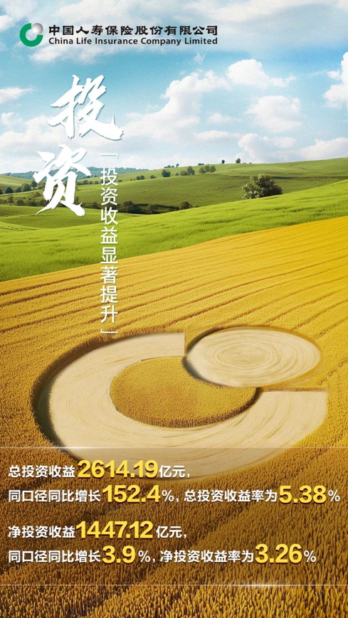 前三季度,中國人壽投資收益同比大幅提升。實現歸屬于母公司股東的凈利潤人民幣1045.23億元,同比增長173.9%;總投資收益人民幣2614.19億元,同口徑同比增長152.4%,總投資收益率為5.38%;實現凈投資收益人民幣1447.12億元,同口徑同比增長3.9%,凈投資收益率為3.26%。截至三季度末,中國人壽總資產達人民幣64815.54億元,投資資產達人民幣63562.35億元,較2024年初分別增長11.7%、12.3%。
