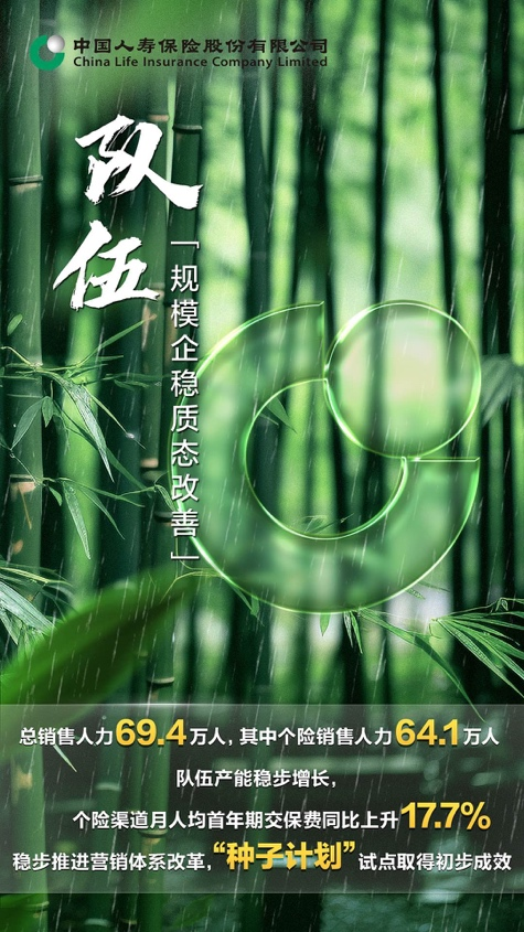始終將深化改革作為推動高質量發展的關鍵一招,中國人壽穩步推進營銷體系改革,深化推進現有隊伍向專業化、職業化、綜合化轉型,著力實現隊伍優增優育和產能提升。個險新型營銷模式試點快速推進,“種子計劃”在南京、深圳等24個城市試點,取得初步成效。