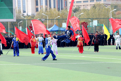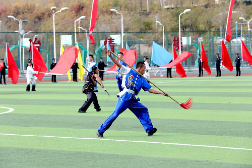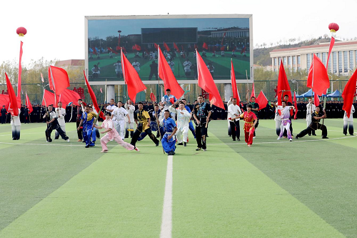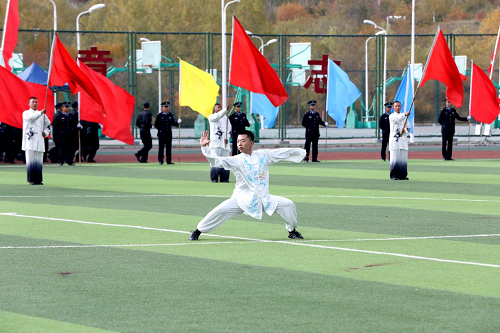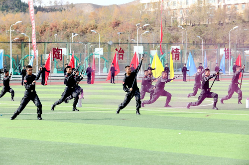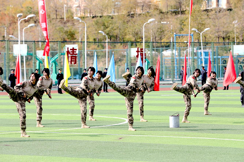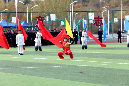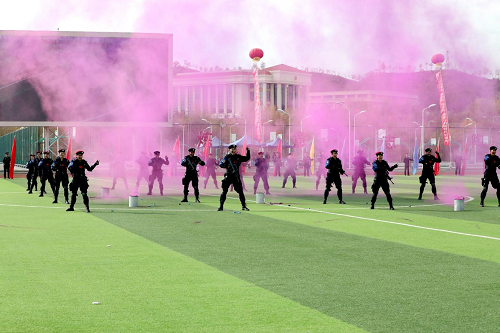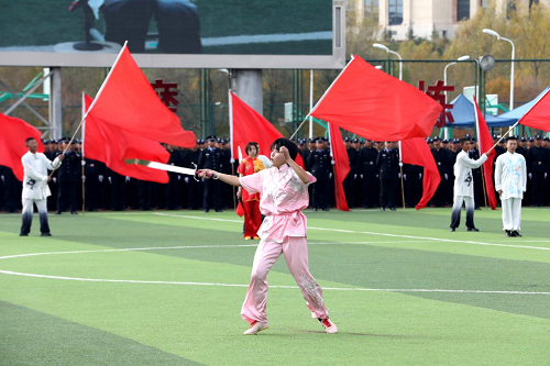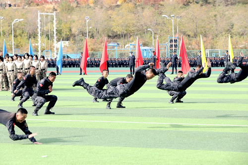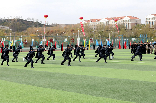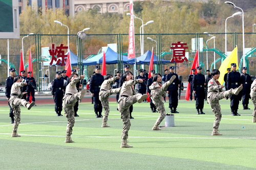 伴隨著激昂雄壯的進行曲,2024級新生進行了分列式表演,他們步履鏗鏘,目光堅毅,英姿颯爽,斗志昂揚,以整齊的步伐、飽滿的熱情展現了警院學子的精神特質。民族舞瞬間點燃了現場的熱烈氣氛,贏得現場觀眾的陣陣掌聲,學生們身著維吾爾族、蒙古族服飾,步伐輕盈、舞姿優雅,充分展現了中華民族一家親,同心共筑中國夢的和諧美好景象;武術與音樂結合表演默契配合,武術健兒們隨著笛子、琵琶的演奏舞動起來,時而輕盈如燕,時而威猛如虎,一招一式盡顯中華武術的博大精神與獨特魅力;“貫耳沖膝、抓腕砸肘、擋臂掏腿……”擒敵拳表演整齊劃一,虎虎生威,氣勢震天,銳不可當,展現了警院男兒的英勇與智慧,伴隨著“對黨忠誠、服務人民、執法公正、紀律嚴明”響亮口號,同學們依次擺出“同學”“你好”“啟程”等字樣及中國地圖、甘肅地圖等圖案,充分表達了對黨的感激之情和對祖國的熱愛,以及對警院生活的美好憧憬;學院“利劍”特訓隊綜合格斗術、應急棍術、警務戰術、女子匕首術、女子警用短棍、警棍盾牌操等警務技能表演,剛強有力、氣勢恢宏,生動地塑造了不畏險阻、英勇頑強、劍鋒所指、所向披靡的利劍特訓隊良好形象。