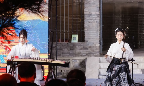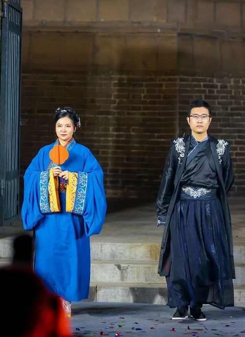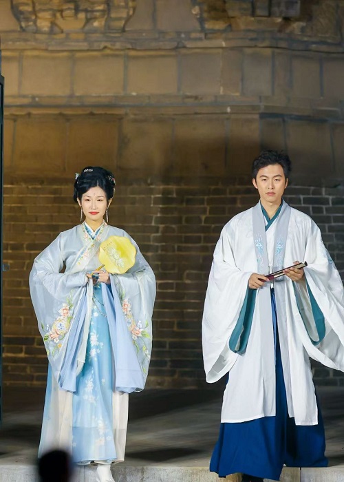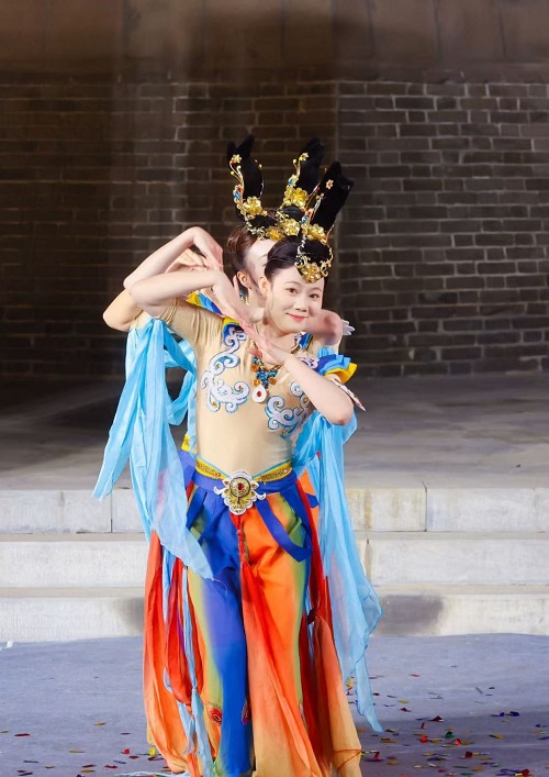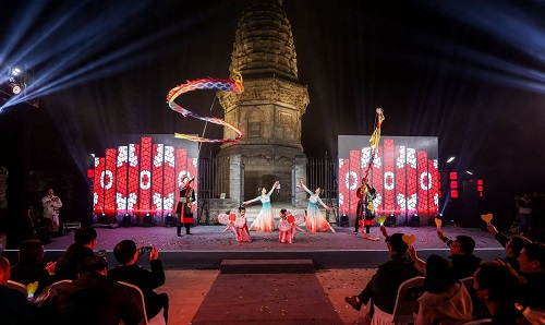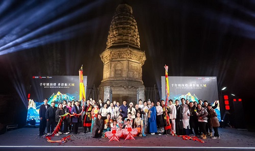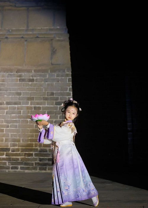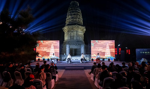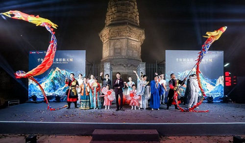 點亮儀式后,精彩文藝表演悉數登場。民樂《盛世華章》《茉莉花》,古典舞《九州同》,詩樂舞《摸魚兒?雁丘詞》,獨唱《越人歌》《青玉案》,華服秀《錦繡華章》,朗誦《問天》,歌舞《雪龍吟》……一個個國風節目在塔下上演,好似“古今對話”。