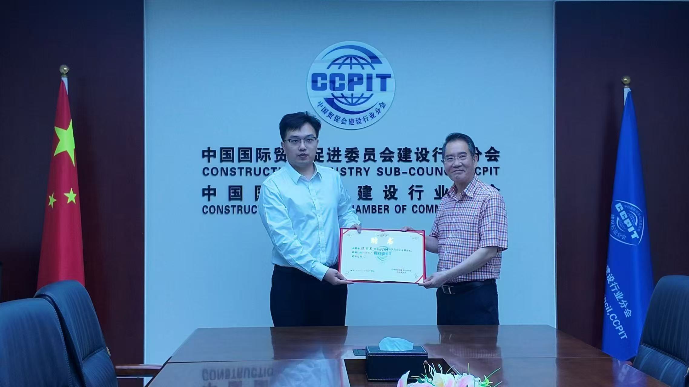 近日,中澤誠(北京)投資管理有限公司(以下簡稱公司)成為中國國際貿易促進委員會建設行業分會(以下簡稱中國建設貿促會)副會長單位,公司董事長陳真龍先生受聘為中國建設行業貿促會企業副會長。