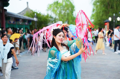 同時,巡游方陣與100+NPC節目互動覆蓋全園,游客可沉浸式游玩互動,形成“可玩可學”的文化體驗閉環。啤酒燒烤廣場融合演藝與餐飲業態,打造“演藝+美食”的夏夜社交空間,助力區域夜間消費提升。游客更可體驗天外飛仙威亞項目,系上威亞裝備凌空飛渡,化身仙俠主角御風而行,俯瞰璀璨燈海;或踏上奇幻漂流之旅,乘船穿梭水道中,感受13米落差的水流傾瀉、光影迷離的夢幻旅程?!讹w越泰山》《盤古開天》等核心項目晝夜雙開。讓游客的嗨玩體驗從白晝延伸至星空之下。